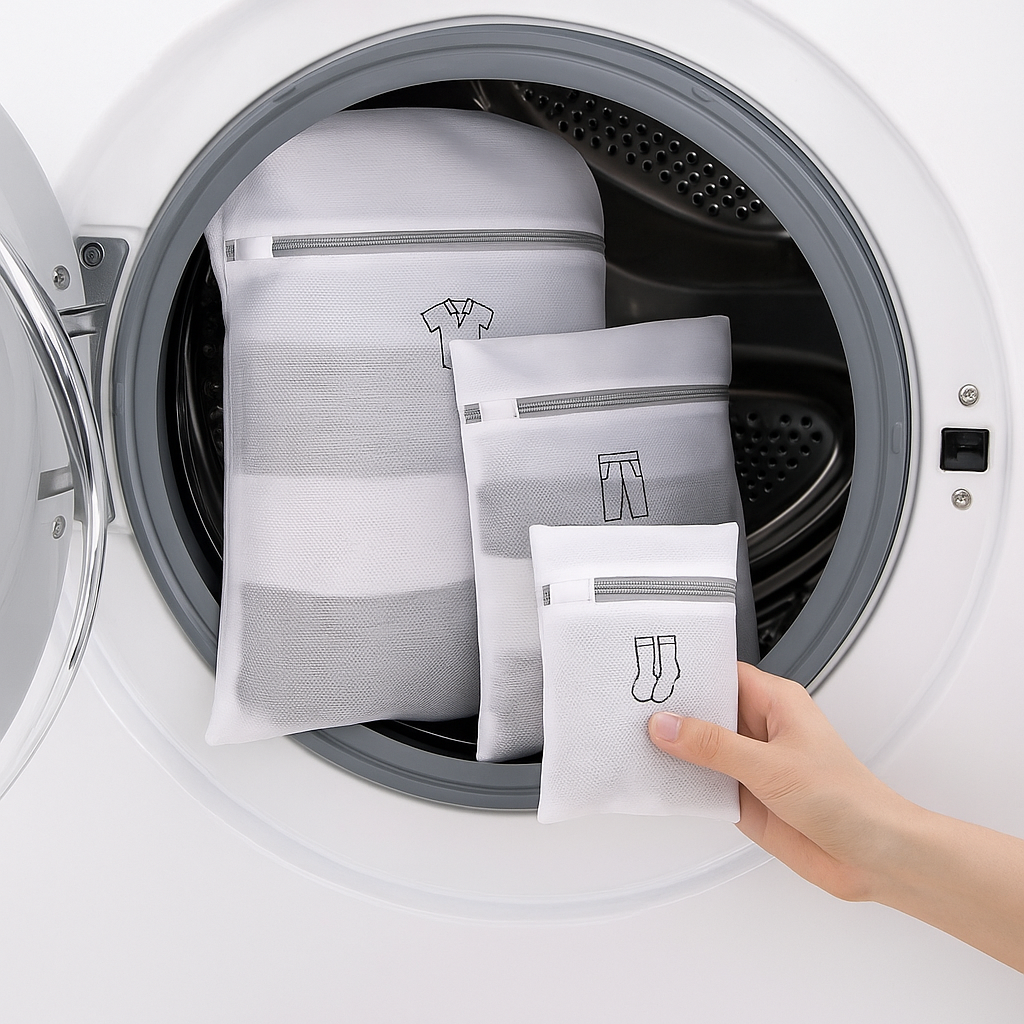 These premium Mesh Laundry Wash Bags are designed to keep your clothes safe in the washing machine while simplifying storage and travel. Available in 3, 4, 5, or 7-piece sets — each with assorted sizes to suit every laundry need.