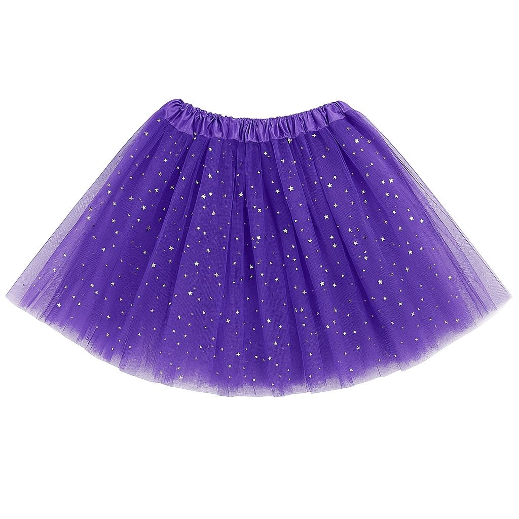 Perfect for adults and kids alike, this sparkling multi-layered tulle skirt is ideal for parties, performances, Halloween, marathons, school events, and more. Lightweight, stretchy, and comfortable — it's made to move with you.